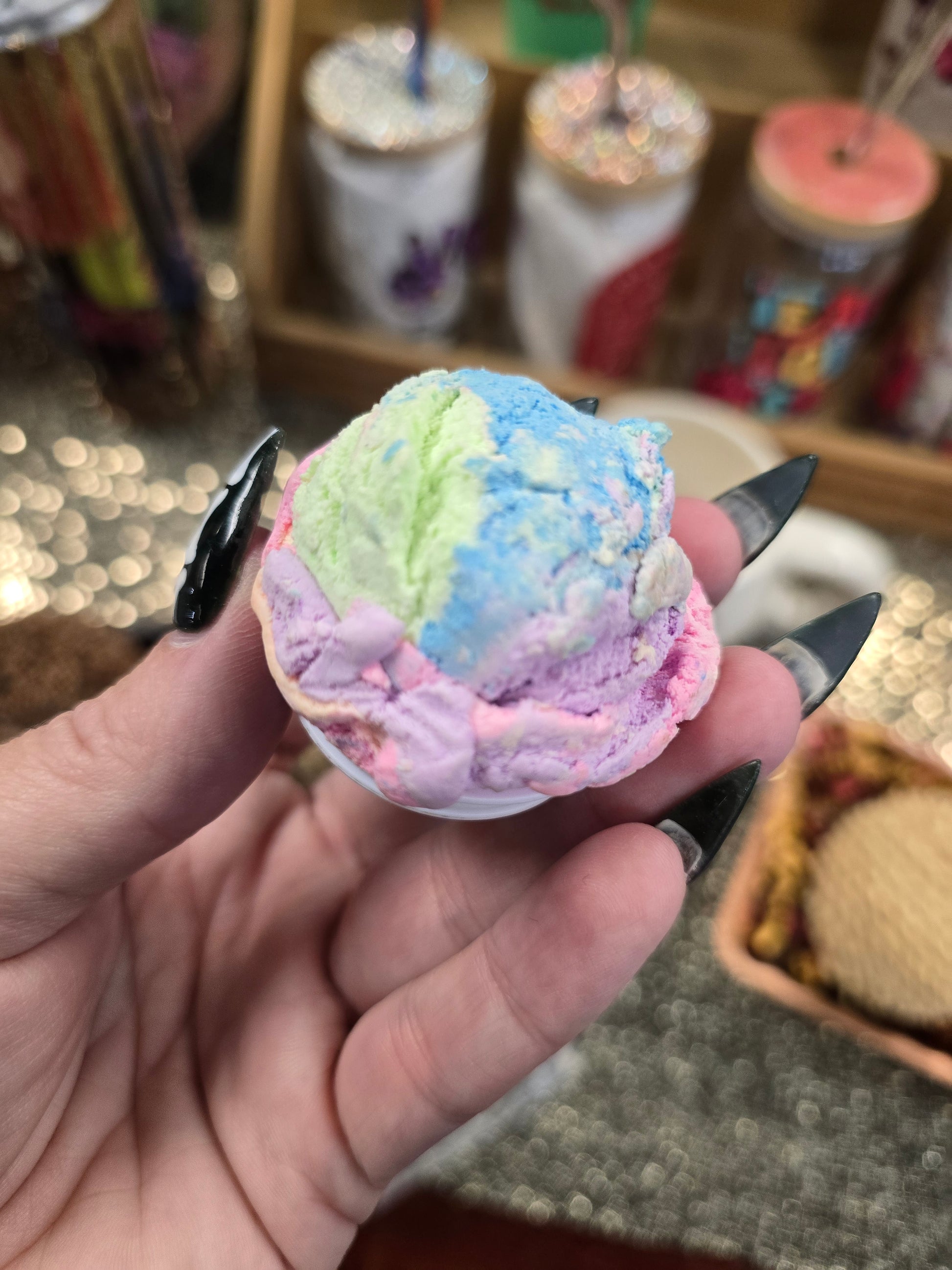 This playful pop socket is the cherry on top for your phone or device! With a rainbow resin ice cream scoop design on a white base, you'll always have a fun and unique grip. Say goodbye to dropping your device and hello to sweet style. (Only 2 exclamation points, we promise!)
