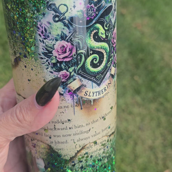 Ambition looks good on you. This 20-ounce stainless steel double-walled tumbler showcases Slytherin pride with deep emerald and silver tones, elegant serpent accents, and a sleek house crest. Whether it’s iced coffee or tea, your drink stays perfectly chilled or hot.