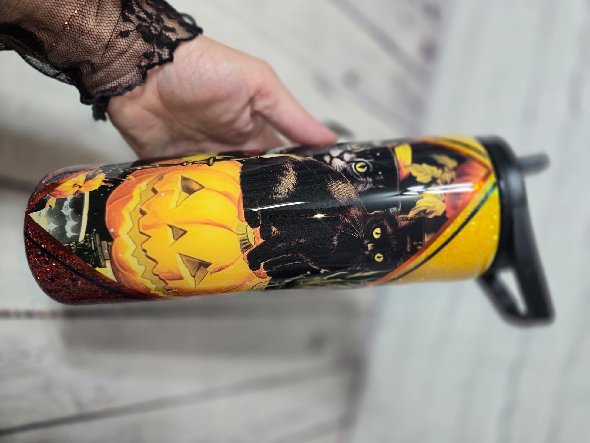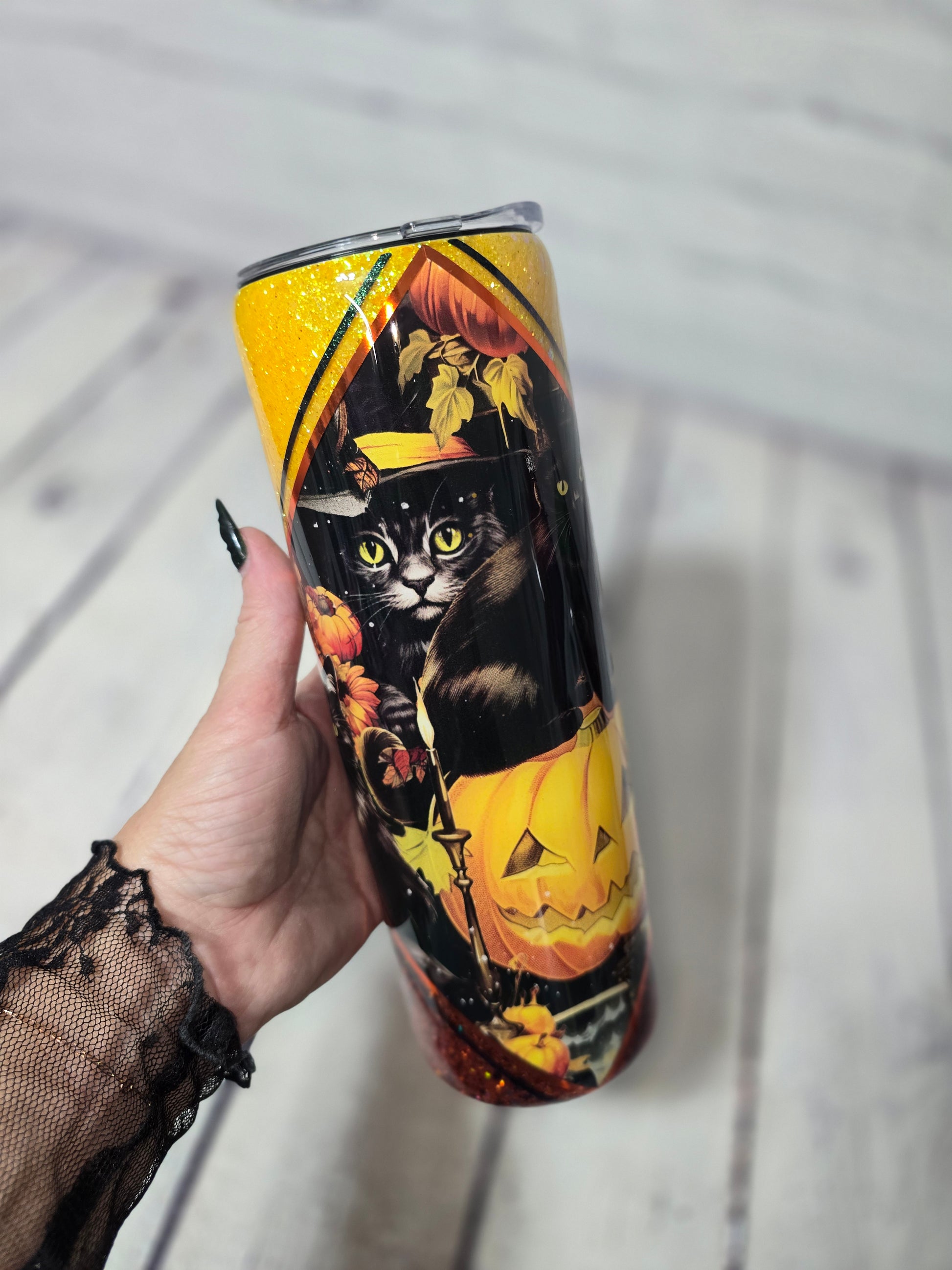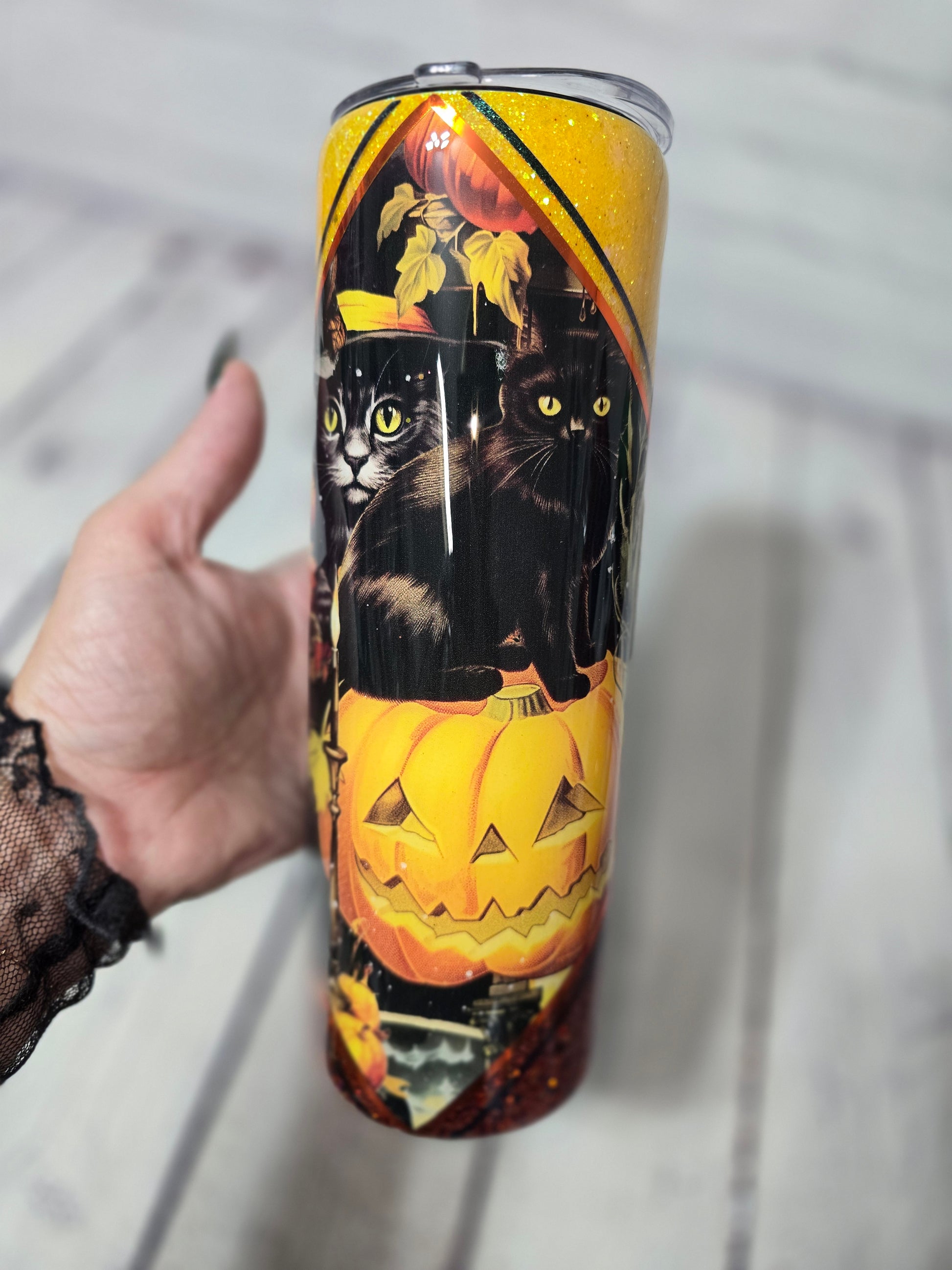 Tumbler- Black Cats & Pumpkin