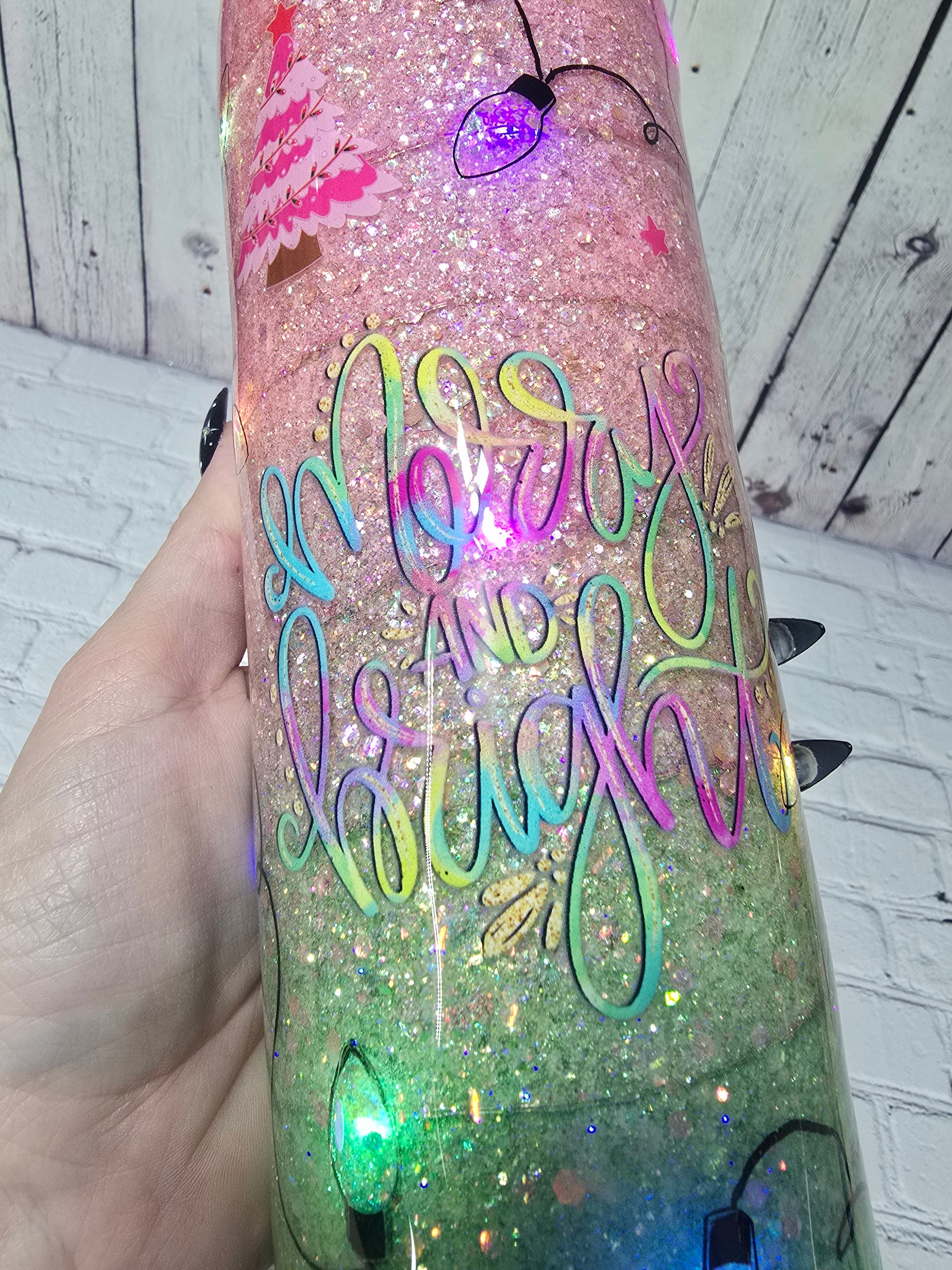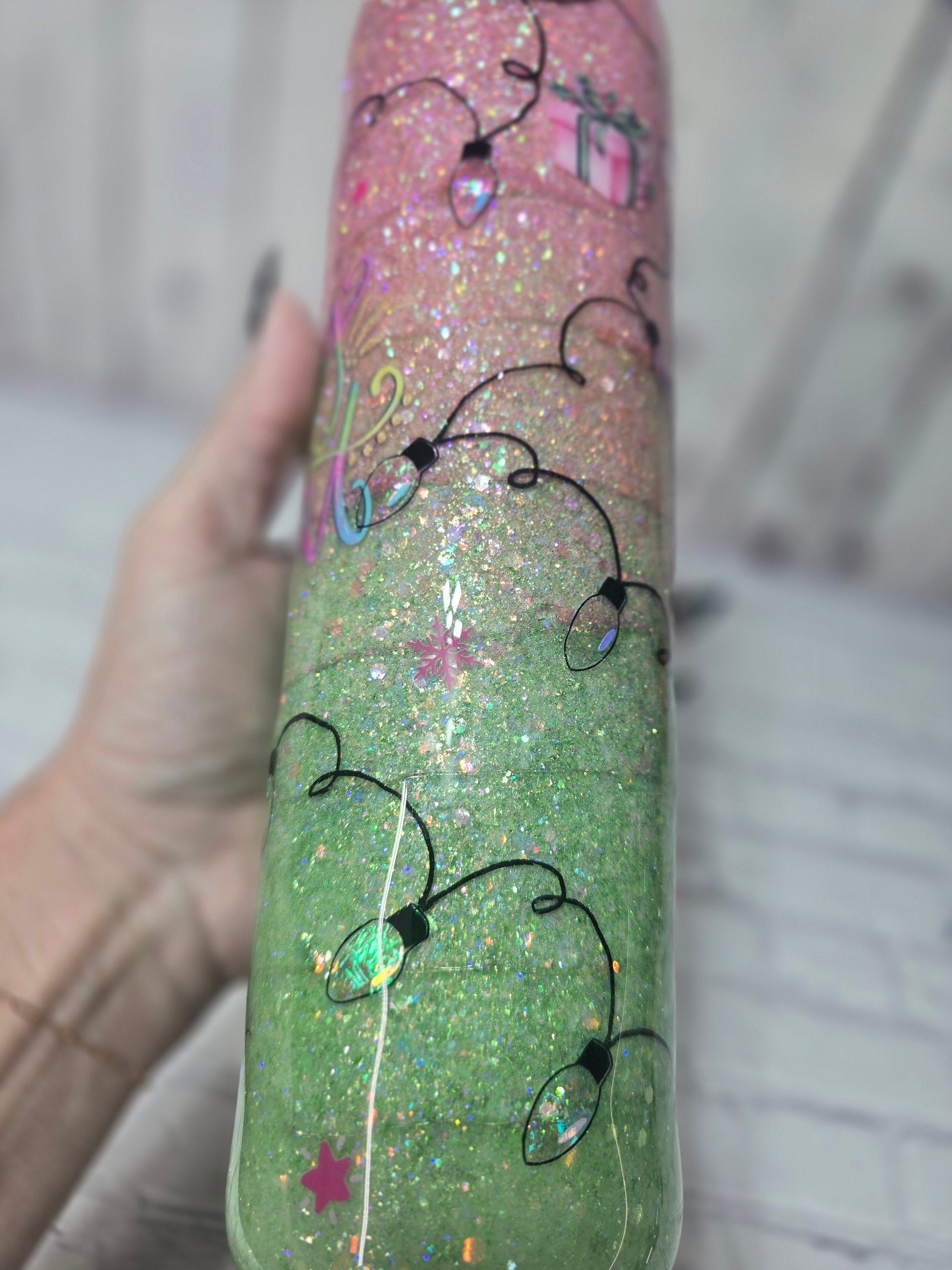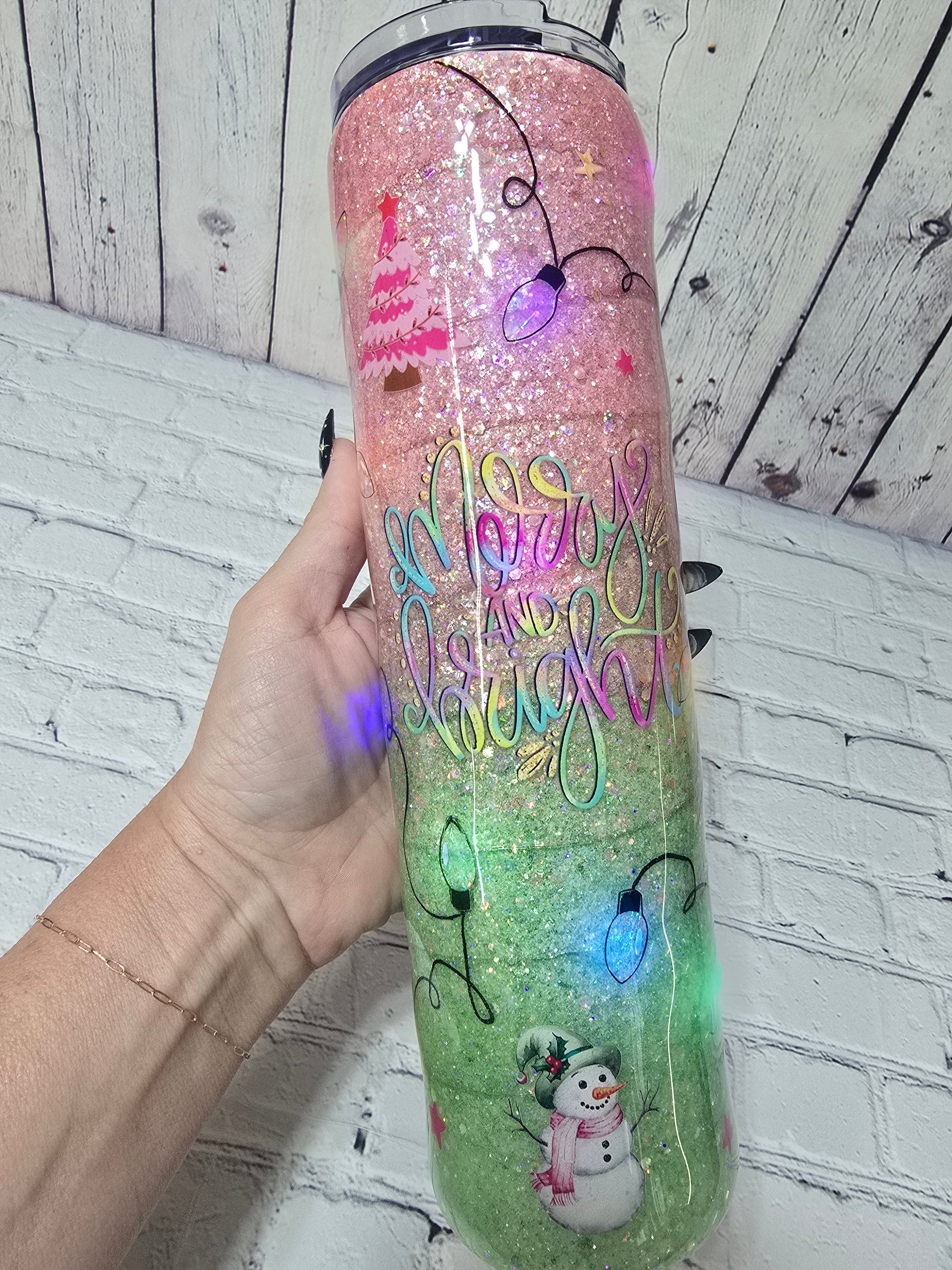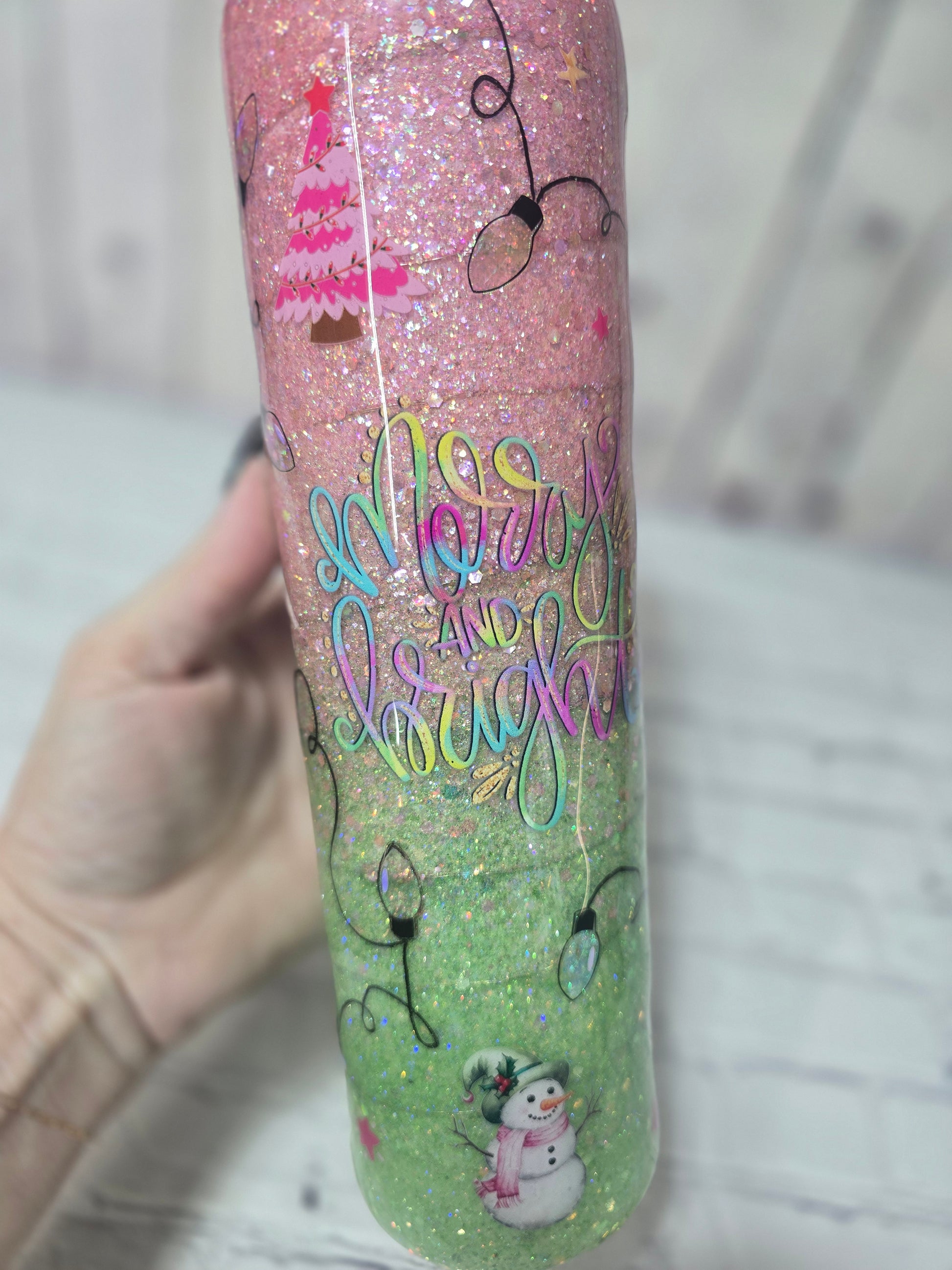 Get festive with our Tumbler- Pastel Merry & Bright! This tumbler features a pastel ombre design (pink to green) with delightful Christmas decals and a "Merry and Bright" label. Plus, it lights up with 3 settings, making it the perfect gift for any Christmas lover. Spread holiday cheer in style!