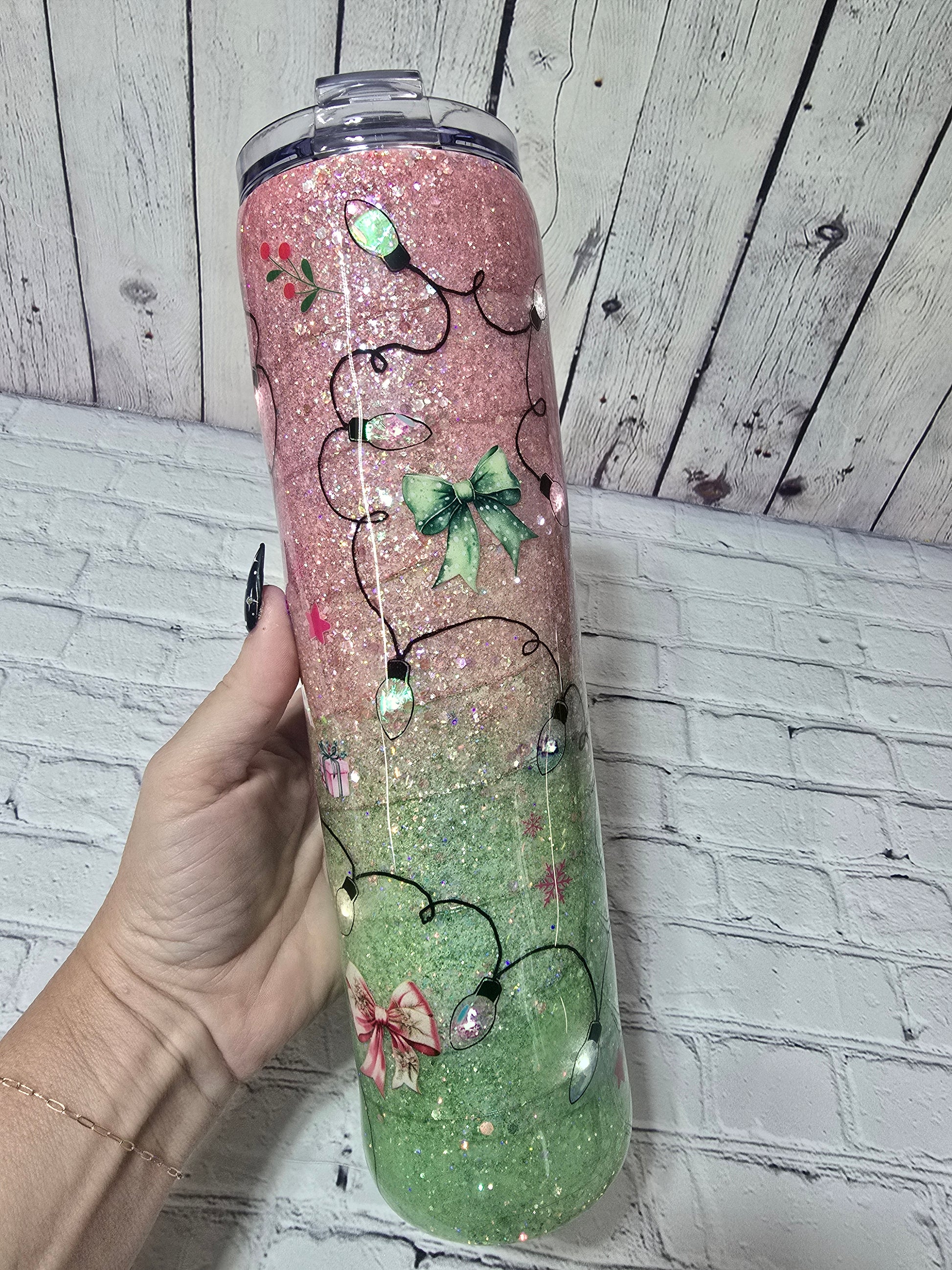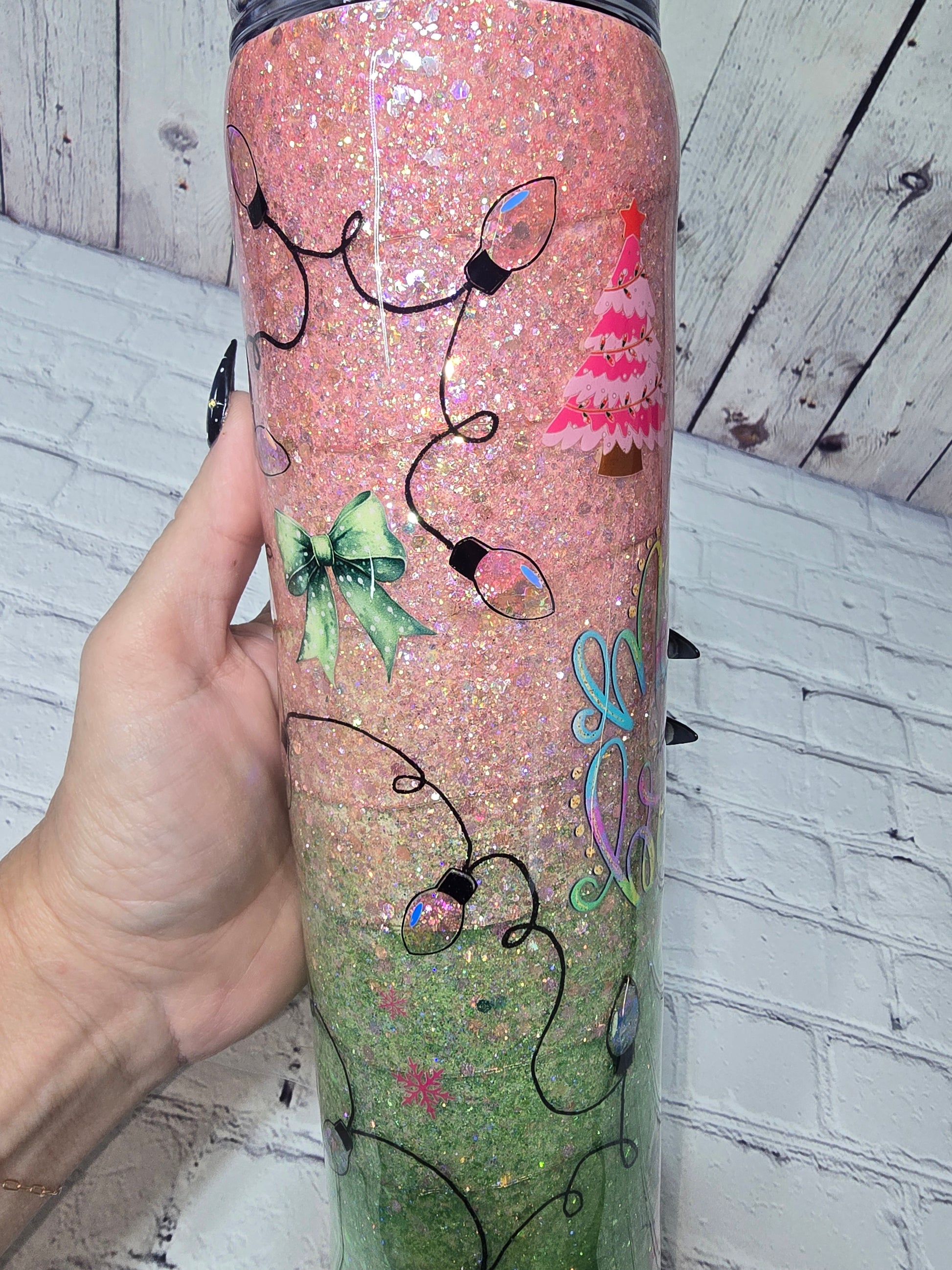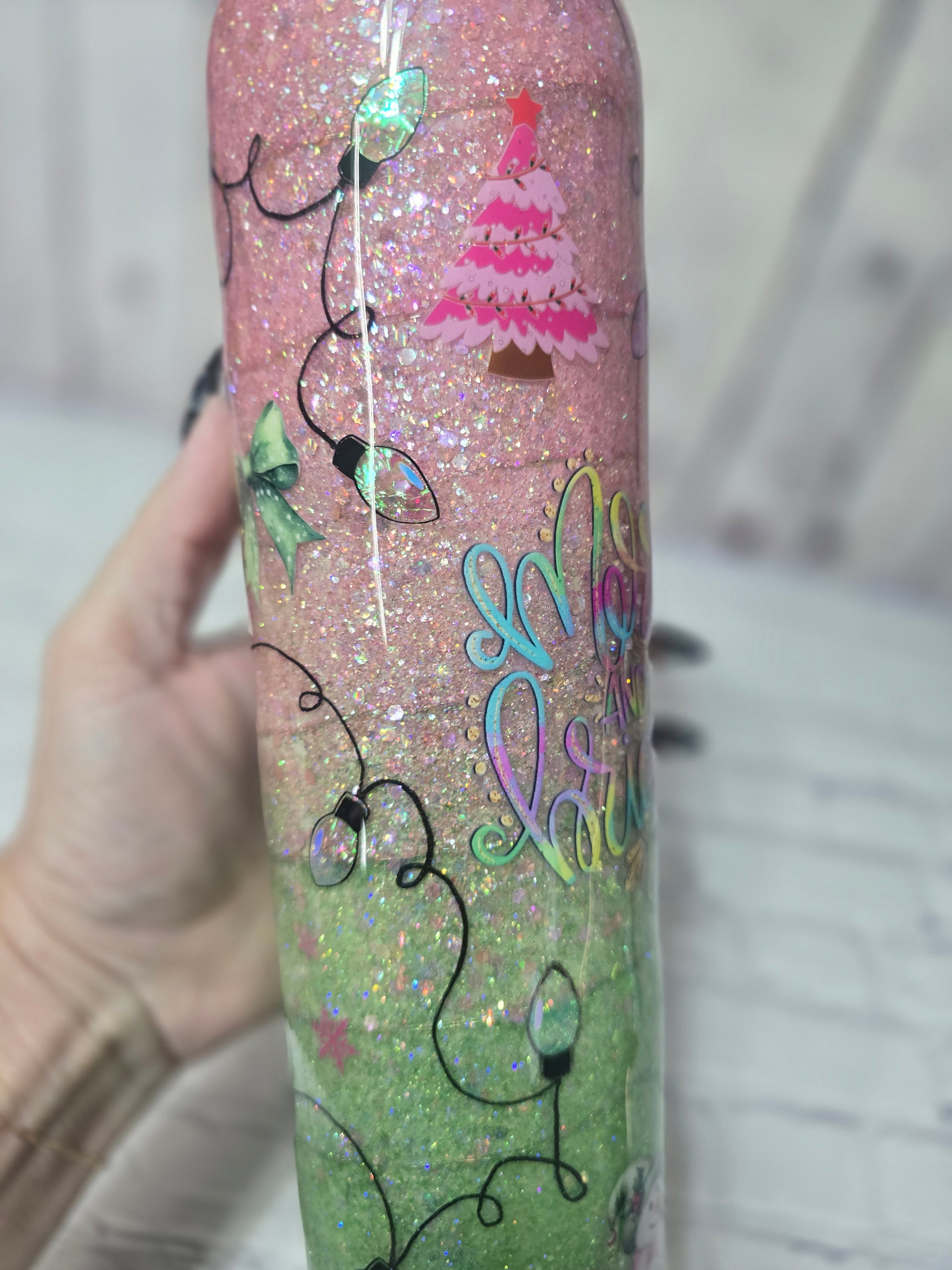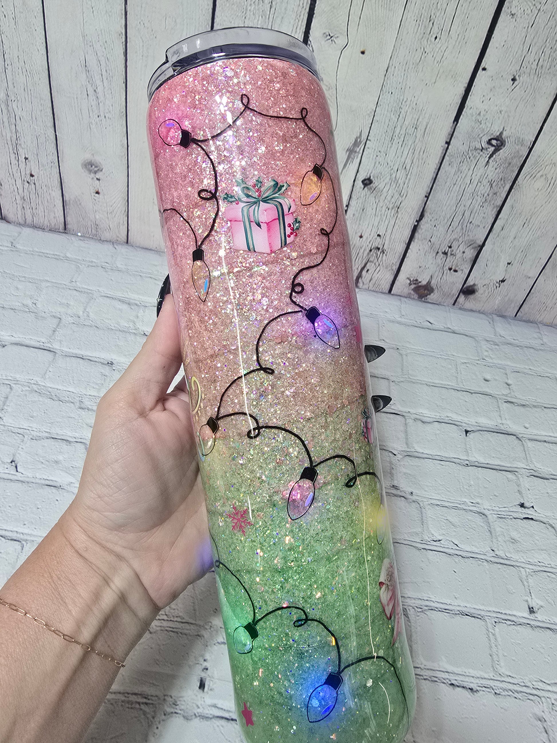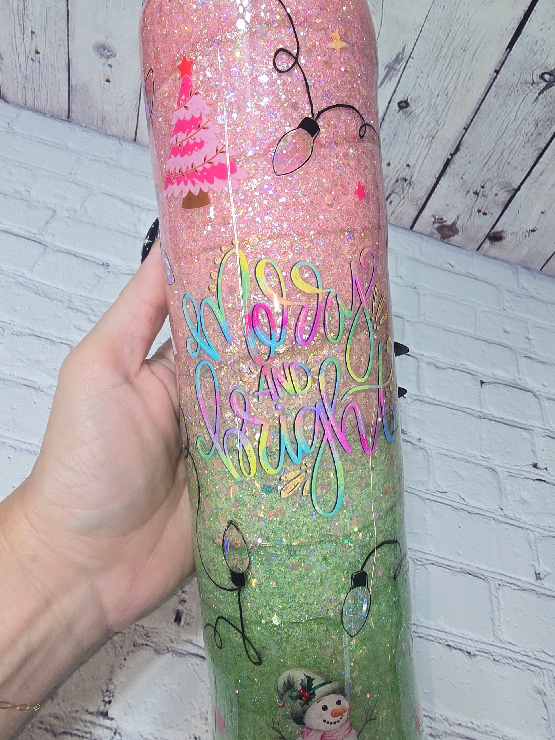 Get festive with our Tumbler- Pastel Merry & Bright! This tumbler features a pastel ombre design (pink to green) with delightful Christmas decals and a "Merry and Bright" label. Plus, it lights up with 3 settings, making it the perfect gift for any Christmas lover. Spread holiday cheer in style!